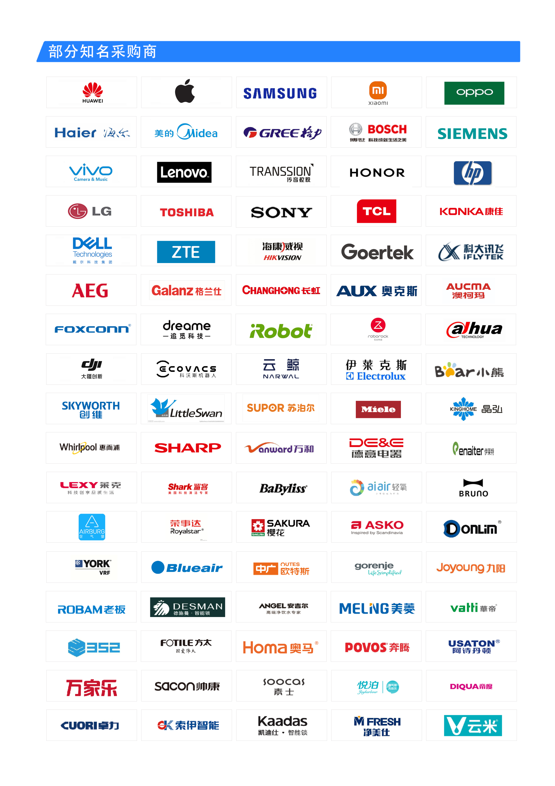 5.部分VIP觀眾和采購(gòu)商:海爾、美的、格力、華為、蘋果、小米、OPPO、海信、TCL、康佳、聯(lián)想、榮耀、VIVO、大疆、長(zhǎng)虹、創(chuàng)維、奧克斯、博世、西門子、松下電器、東芝、三星、LG、榮事達(dá)、格蘭仕、美菱、澳柯瑪、小天鵝、美大、方太、老板、華帝、帥康、櫻花廚衛(wèi)、阿里斯頓、林內(nèi)、蘇泊爾、九陽(yáng)、萬和、萬家樂、AO史密斯、云米、萊克、愛仕達(dá)、艾美特、伊萊克斯、伊萊特、小熊電器、安吉爾、凈美仕、阿詩(shī)丹頓、布魯雅爾、亞都、戴森、綠島風(fēng)、科沃斯、云鯨、石頭科技、追覓、一點(diǎn)、曉舞、艾羅伯特等;